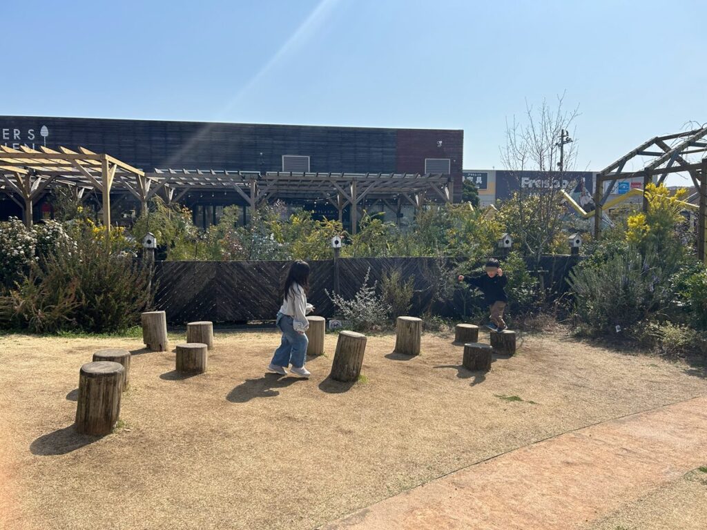 外にでると、子どもたちが遊べる広場があります。少し遊んでから帰りました。